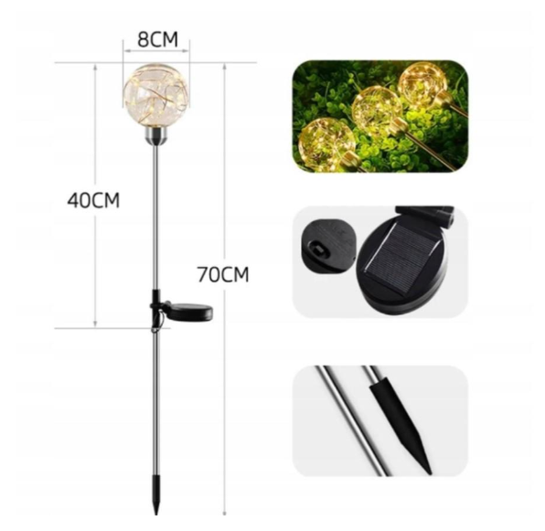 Садовий світильник на сонячній батареї у формі LED кулі — це стильне та практичне рішення для освітлення вашого двору, саду або клумби. Вдень він заряджається від сонця, а з настанням темряви автоматично створює м’яке тепле світло, додаючи атмосферності та затишку.